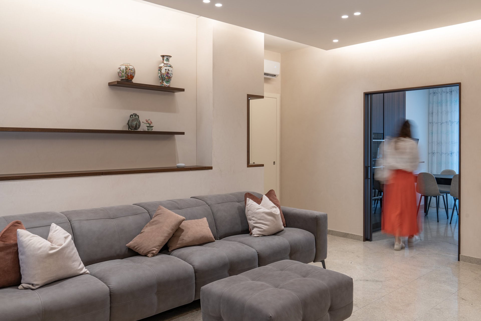 Scopri il progetto progetto di interni a Sottomarina, dove abbiamo realizzato una zona giorno con parete multifunzionale e illuminazione modulare personalizzata.